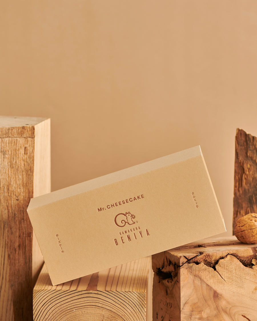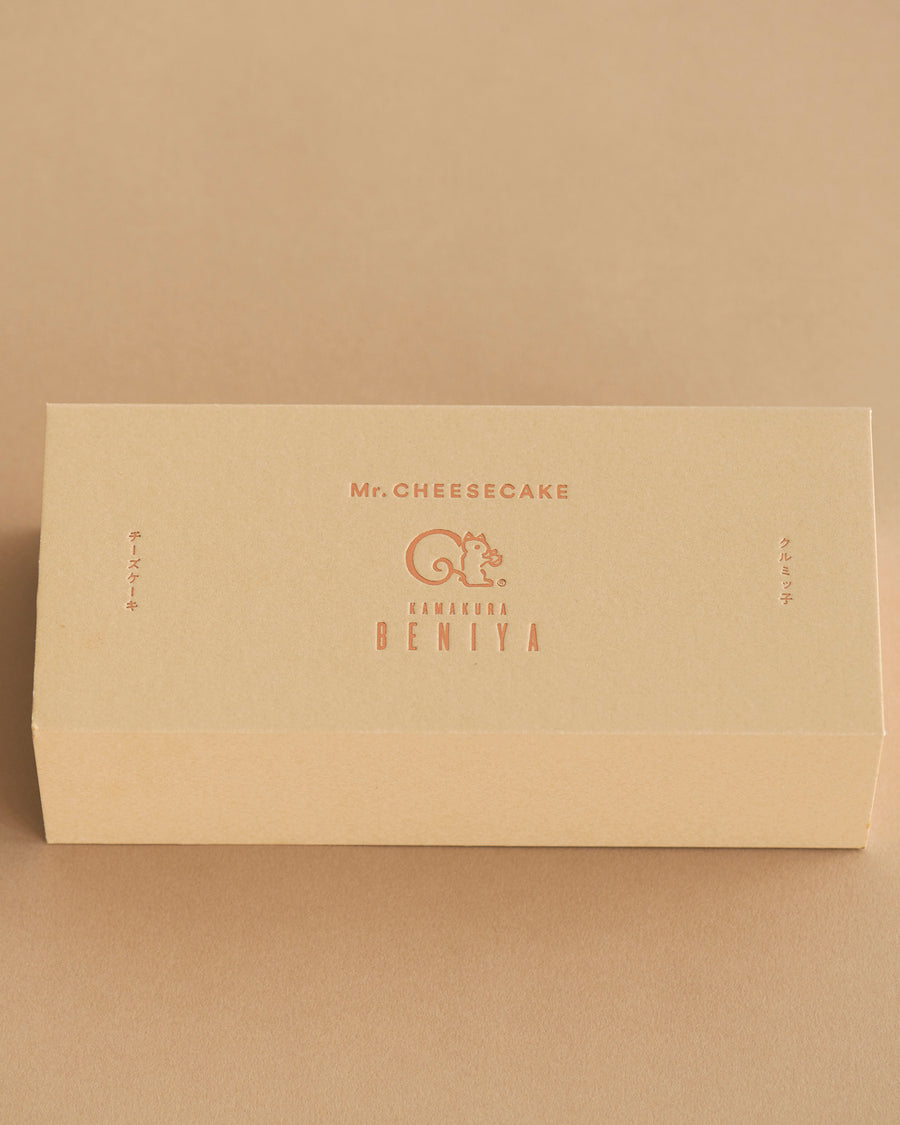 「Mr. CHEESECAKE クルミッ子」は、レトロな見た目がかわいらしい鎌倉紅谷のシンボルキャラクター”リスくん”をあしらった、優しくやわらかい色合いの限定ボックスと、クルミッ子を彷彿とさせる色合いのサテンにチーズケーキを包んでお届けします。