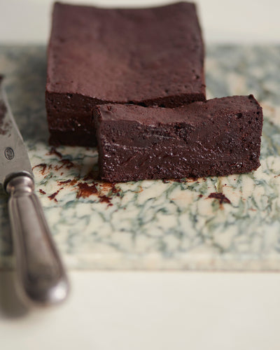チョコレートには、最高級とも言われている「ヴァローナ フェーブ・グアナラ70%」を使用。そこへ、焦がしバターやバニラをふんだんに加え、チョコレートの香ばしさやほのかな苦味を底上げしました。スパイスは加えず、シンプルに仕上げることでチョコレート本来の味わいをお楽しみいただけます。