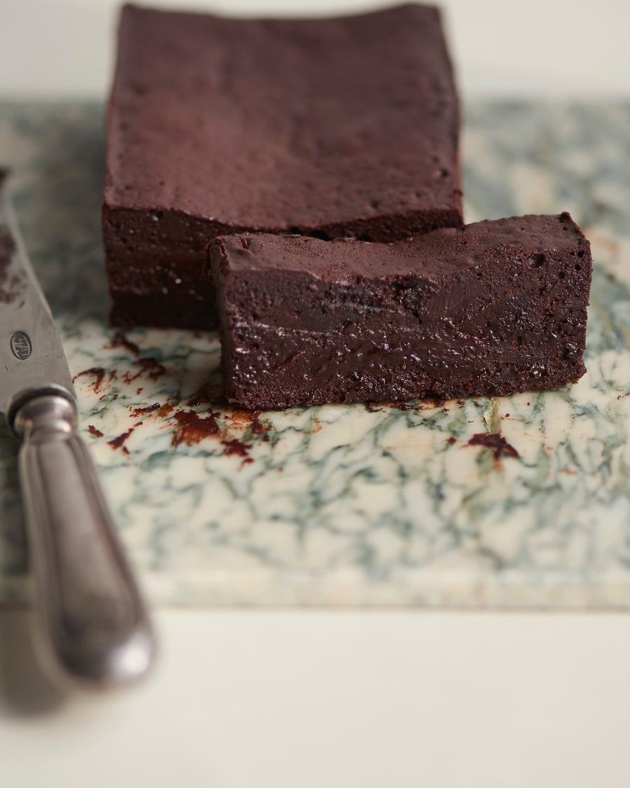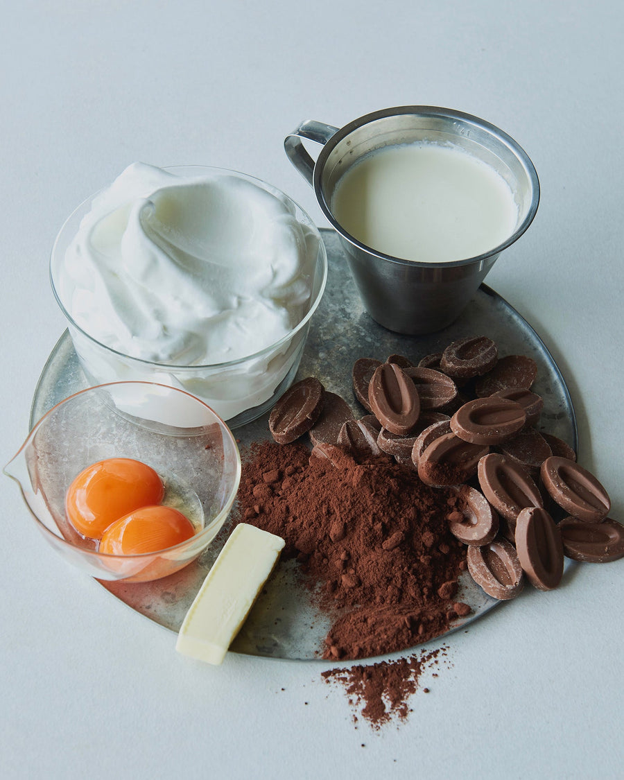 イタリアンメレンゲは、シロップの熱が卵白にほどよく通るため、きめの細かいトロッとした泡が特長です。小麦粉は使用せず、イタリアンメレンゲをチョコレートと合わせることで、滑らかでねっとりとしたエアリーな食感のガトーショコラに仕上げました。