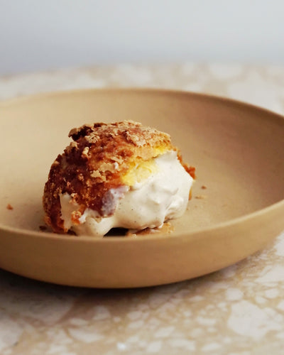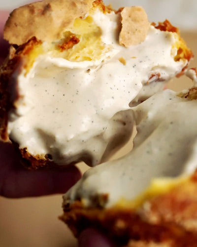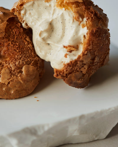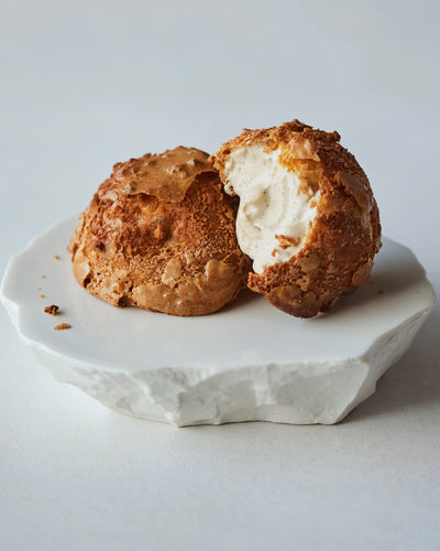 クロッカンシューはあえてシュー生地にクリームを詰める前の状態でお届けします。自分の食べたいタイミングでクリームを詰めていただき、シュー生地のザクザクとした食感、そしてできたての味わいをご自宅でお楽しみください。