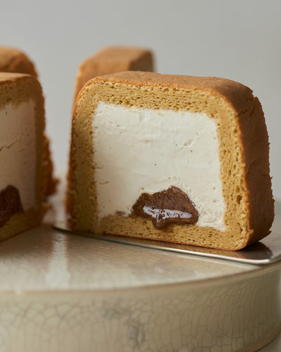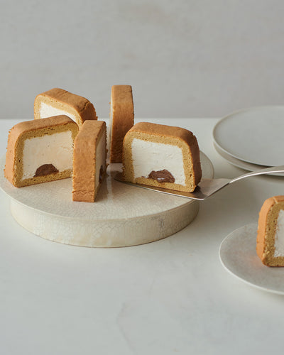 生地のふんわりとしっとりとした食感と、武夷岩茶を使用したクリームの旨みを最大限に生かすため、一般的なロールケーキと比べても珍しい、四角い形に仕上げました。旨味・香り・コクのある口溶けの良いクリームが、しっとりとふんわりを両立させた生地と一緒に溶けて消えていく心地よさをお楽しみください。